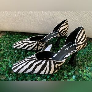 Leather cut, Zebra print, Square toed, Trumpet heel