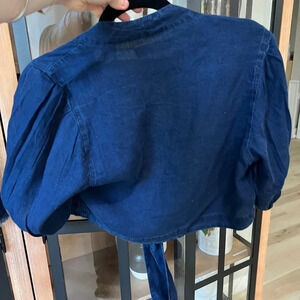 Mango Wrap Top Skirt Set Lyocell Chambray dark wash denim crop high waisted