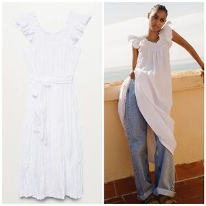 Mango Wrinkled Belted Cotton Dress White New