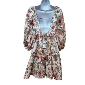 Mango X Chufy Collab Open Back Floral Mini Dress Mediterranean Boho S NEW