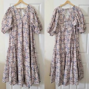 Mango X Chufy Collab Voluminous Maxi Long Floral Printed Dress M New