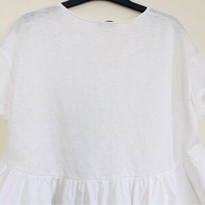 Mango Y2K Boho Oversize White Peplum Ruffle Hem Cropped Short Sleeve Preppy Top