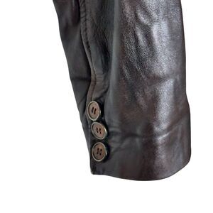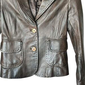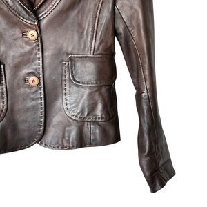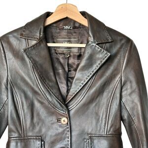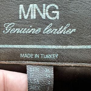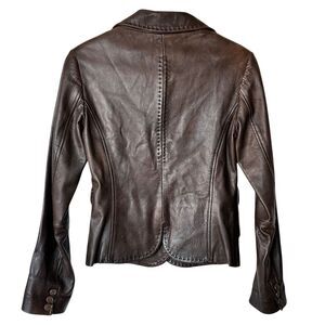 MNG by Mango Brown Leather jacket Y2K distressed collared blazer size 4