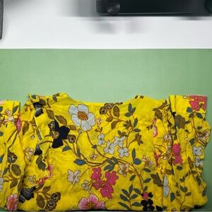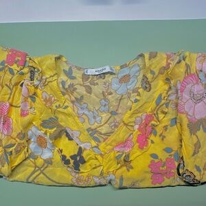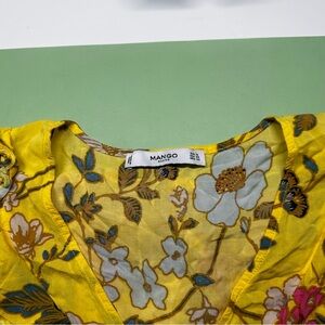 Mango XS ruffle neckline blouse (yellow/multi)