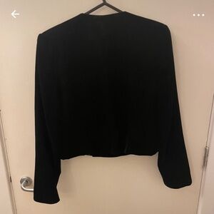 Black velvet cropped blazer from mango. Size large. Only worn once, so is in excellent used condition with no flaws! Open to offers!