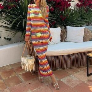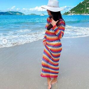 Cotton-blend fabric. Crochet fabric. Oversize design. Long design. Multicolor design. Off shoulder.Long sleeve. Open oack. Unclosed. Festival Season.