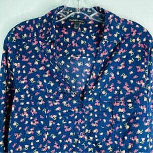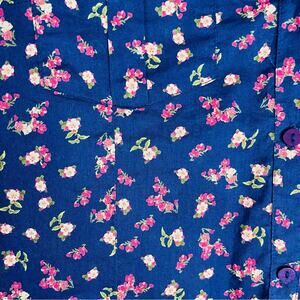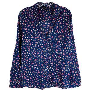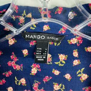 Mango blue pink floral lightweight cottagecore button down shirt top small