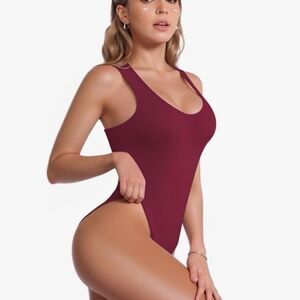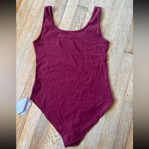 This Mango bodysuit in a striking red color features a scoop neckline and wide shoulder straps for a classic look. Its form-fitting silhouette offers a flattering fit, perfect for any occasion.