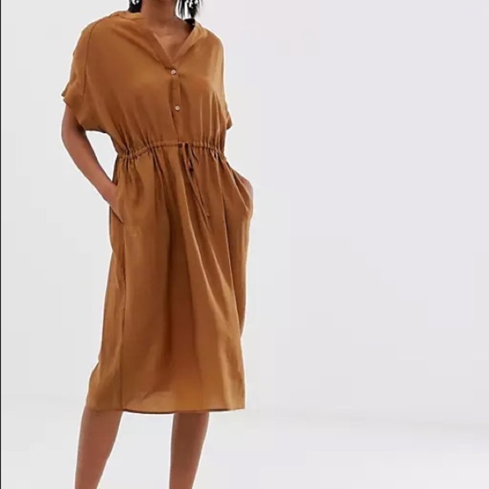Mango hammered satin shirred waist dress