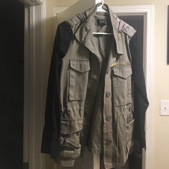 Almost new army green with black sleeves and a string to tighten and add a waist! Perfect for fall!