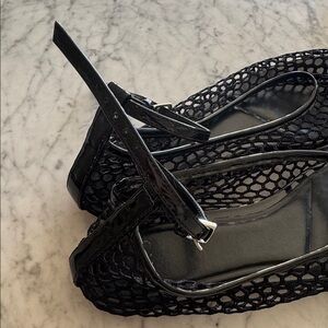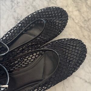 Black mesh knit flats w ankle strap