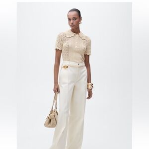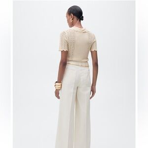 Beautiful and sweet cream knit blouse from Mango. Peter Pan collar. Openwork knit. Wavy hem. Button closure at the neck. Absolutely darling.