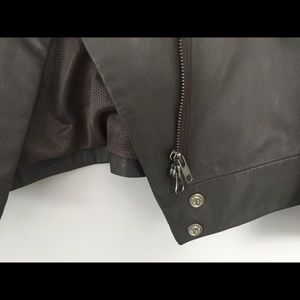 Grey leather motor cycle jacket. Nice lining inside. Strong zipper. Nice leather.