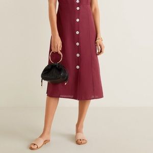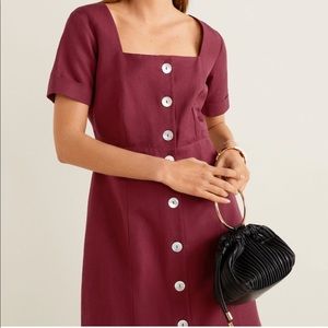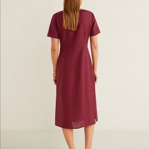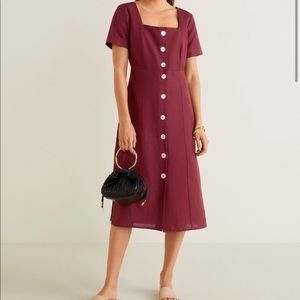 Mango maroon medium Buttoned linen-blend dress