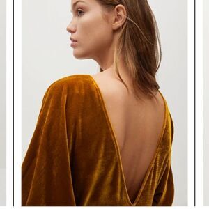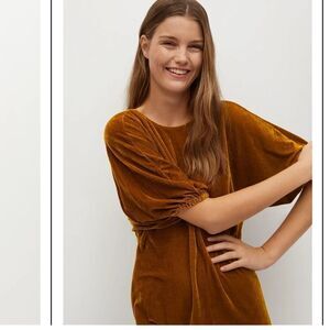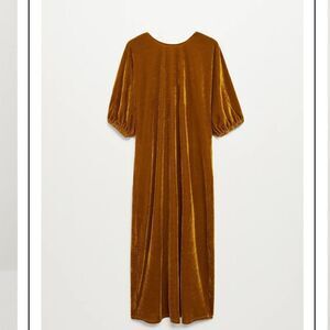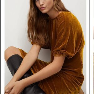 Velvet fabric, Midi design, Rounded neck, Back neckline, Short sleeve, Elastic cuffs, Side length 32.48 in Back length 32.36 in.