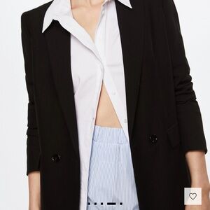 Mango Stylish blue striped oversized button-up shirt and bermuda shorts set. Perfect for casual outings and holidays