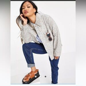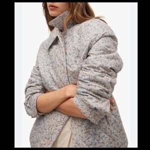 Mango quilted ditsy floral print jacket in light blue NWOT