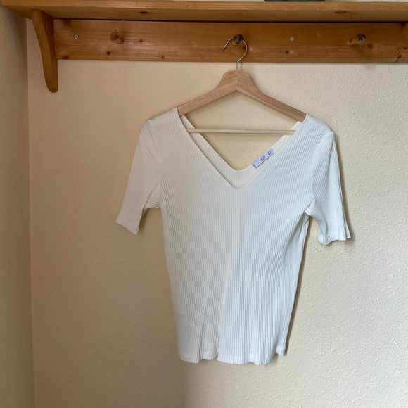 Off-white Mango ribbed sweater, size S, like new! Great for layering or to wear on its own.