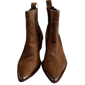 Mango suede leather pointed toe 2.5” heel silver metal tips size 36 size 6
