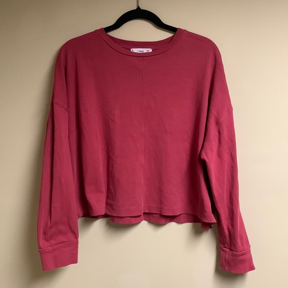 Mango long sleeve top. Loose fit/slight crop. Much more muted maroon/purple in person than in picture. Has a washed/vintage feel while still being in good condition. Just the color but I did lower the price to reflect that.