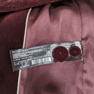 Velvet fabric. Straight design. Long design. Lapel-collar V- neck collar. Lapel with notch. Long sleeve. Welt pocket on the chest. Button fastening on the front.
