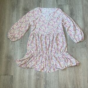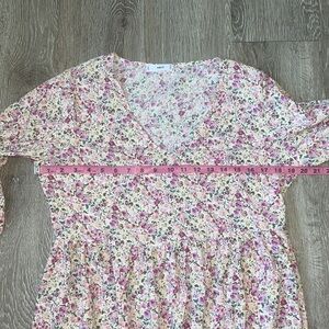 Mango v-neck mini smock dress in pink ditsy floral size 6