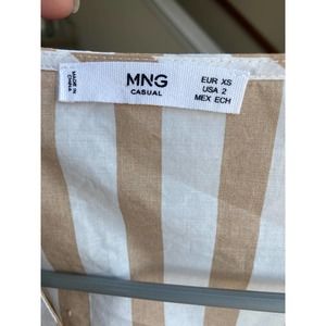 Mango white/tan striped button down short sleeve shirt, size XS. Lightweight material great for spring/summer. NWOT-- No flaws.