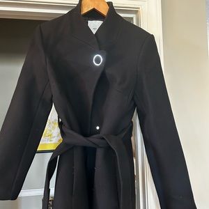 Mango wool belted coat in black