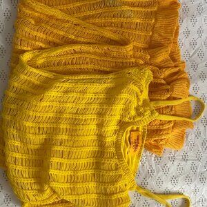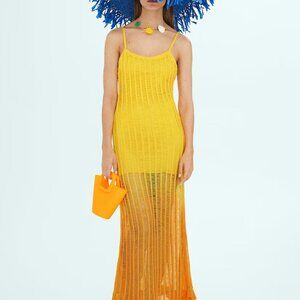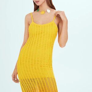 Long Yellow Knitted Dress With Open Work.