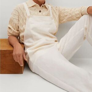 100% Linen, Long design, Straight design, Straight neck, Straps with button closure, Chest pocket, Side pockets, Patch pockets on the back