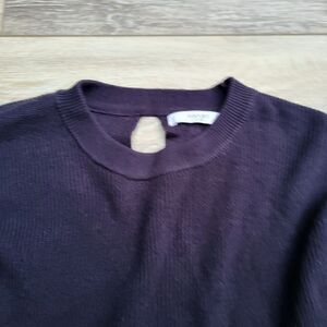 This Mango Basics navy blue sweater with a keyhole back is a stylish and versatile piece that is perfect for any occasion. The sweater features a classic navy blue color that is easy to pair with other pieces in your wardrobe, and the keyhole back adds a touch of elegance to the design.