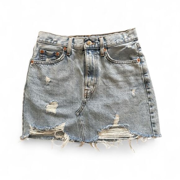 Trendy distressed jean shorts. Casual and stylish design. Ideal for everyday wear. Pre-loved condition.