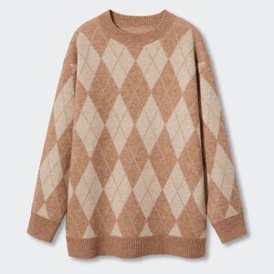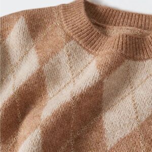 Thick knitted fabric. Lurex fabric. Straight design. Rounded neck. Argyle print. Long sleeve. Co-ord.