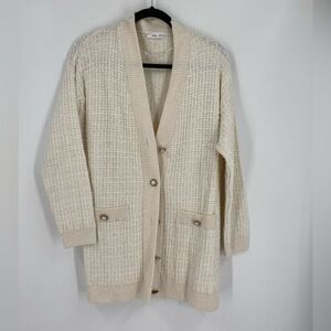 Mango Cream Oversized Textured Knit Cardigan Duster Size S Button Front