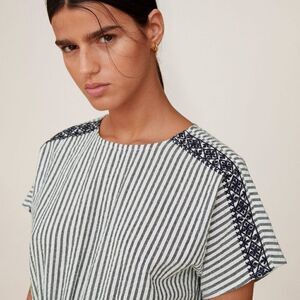 Mango Embroidered Dress Striped New New with tags 100% cotton