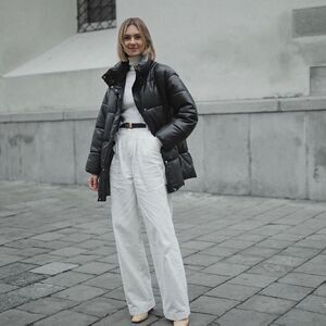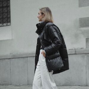 Water-repellent. Quilted design. Funnel neck. Midi design. Long sleeve. Side pockets. Zip fastening on the back section. Button up.