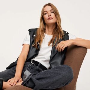 Mango Faux Leather Sleeveless Jacket Vest