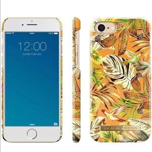 Mango Jungle phone case. Love this pretty tropical design with leaves and birds. Green brown and orange. Slim design. Gold brand badge on front. Made from durable, high quality responsibly sourced materials 100% Vegan