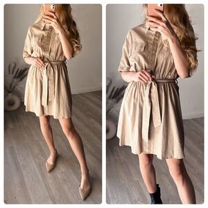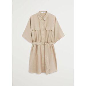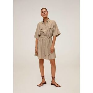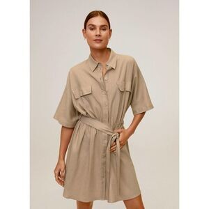 Mango Linen Blend Belted Dress Pockets New