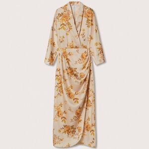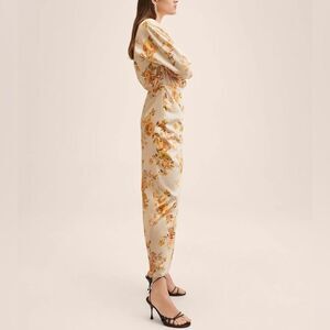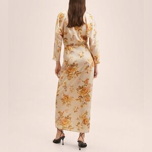 Recycled polyester blend fabric, Flowers print, Long design, Straight design, Wrap collar, Long sleeve, Gathered detail at the waist, Side zip fastening, Party and events collection, Ramadan Collection