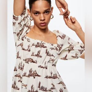 Mango Printed Landscape Desert Cotton Dress New