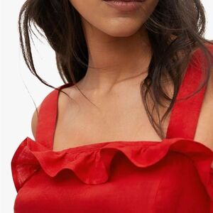 Mango Red Pure Linen Sheath Ruffle Peplum Mini Dress