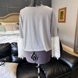 MangoStriped shirt, lace bell sleeve , monochrome knit, statement sleeve top S