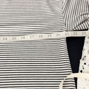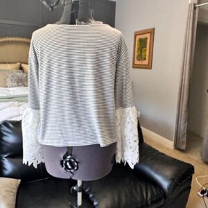 Color/Pattern: Black & white horizontal stripes with white floral lace bell sleeves