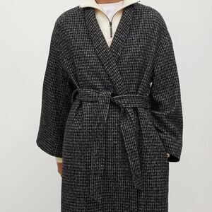 Mango Wool Blend Minimalistic Coat Belted New