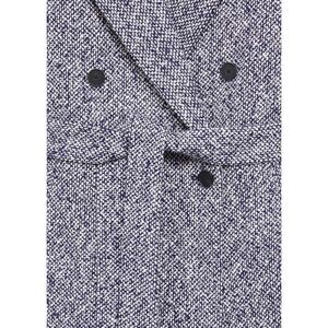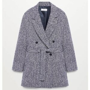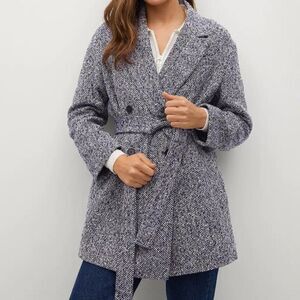 Textured design. Medium design. Crossover design. Lapel-collar. Long sleeve. Loops. Removable belt. Side pockets. Button up. Inner lining.
