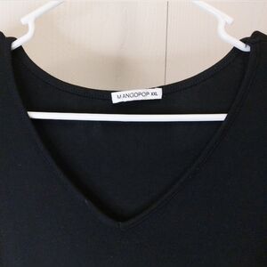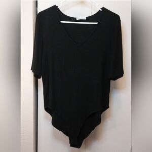 Mangopop V Neck Short Sleeve Stretchy Basic Black Bodysuit Shirt Size XXL