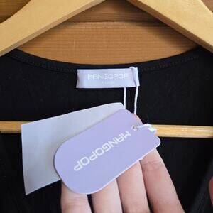 Mangopop Wrap Short Sleeve Bodysuit Top NWT XL Black Vneck Snap Bottom Shirt