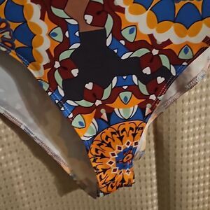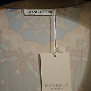 New withtags Mangopop woman bodysuits size XXL long sleeve Scoop neck print yellow blue Burgundy