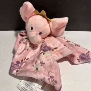 Super soft and sweet pink plush elephant Lovey/Security blanket with floral design. Measures: 13" x 13". Very good condition.